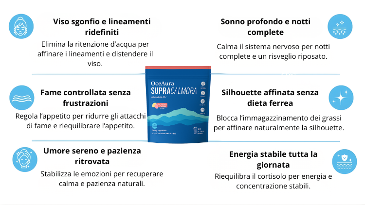OceAura SuperCalm è stato formulato con ingredienti attivi, come il magnesio glicinato e la L-teanina, la cui efficacia è stata dimostrata in studi clinici. Inoltre, i nostri clienti hanno condiviso centinaia di testimonianze positive sui risultati, come un sonno migliore, una riduzione dello stress e un miglioramento della concentrazione. Non è una semplice promessa: i risultati parlano da soli!